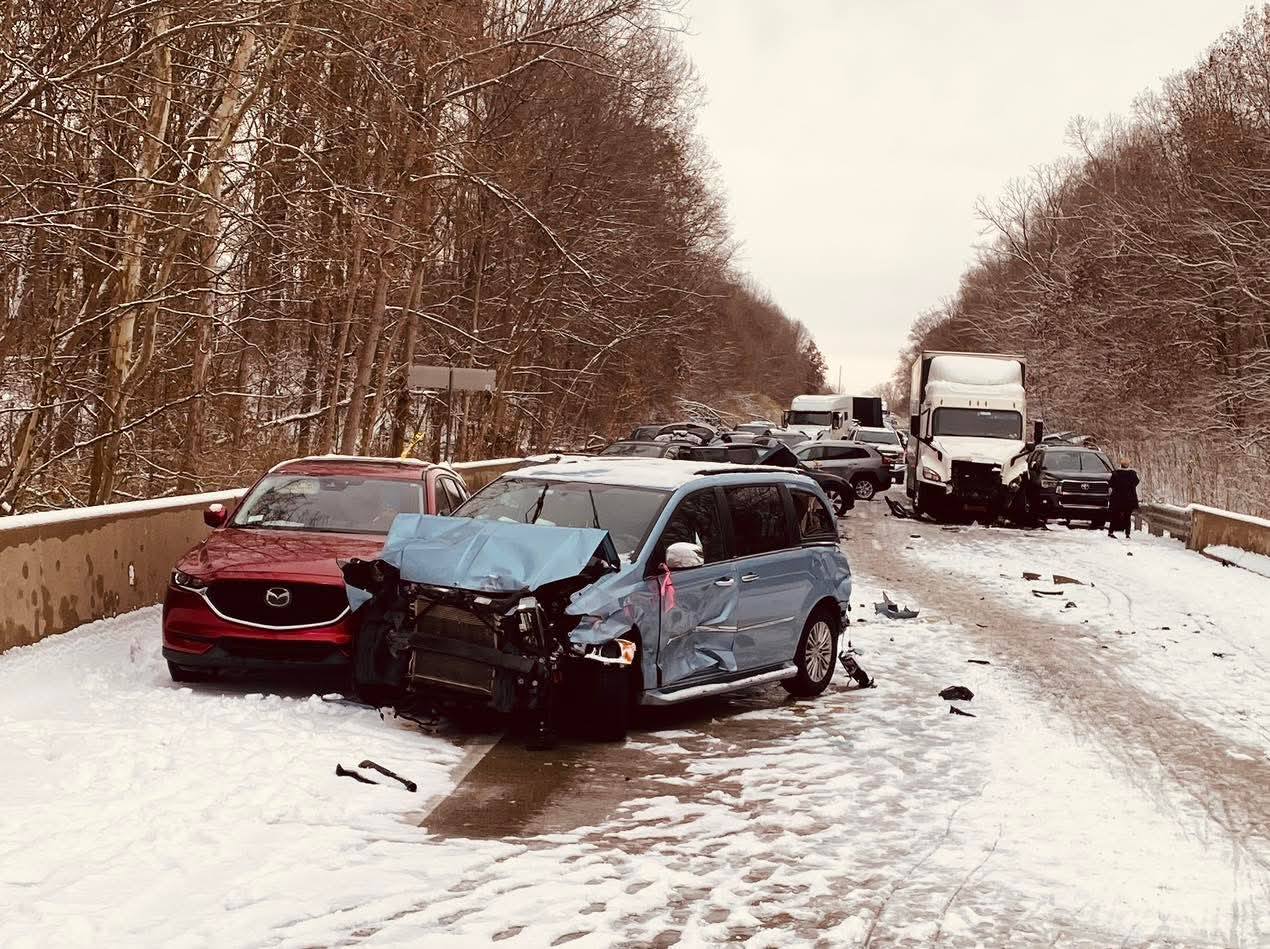 تحطّمَت 45 مركبة على الطريق السريع I-70 في حادث وصفته الشرطة بالفوضى المُطلَقة، مُحذّرةً السائقين من الثلوج والجليد، مع غياب الإصابات الخطيرة. وتتوقّع شركات التأمين خسائر مالية كبيرة، معلنةً بدء تقييم الأضرار وسط توقّعات بارتفاع مطالبات التعويض