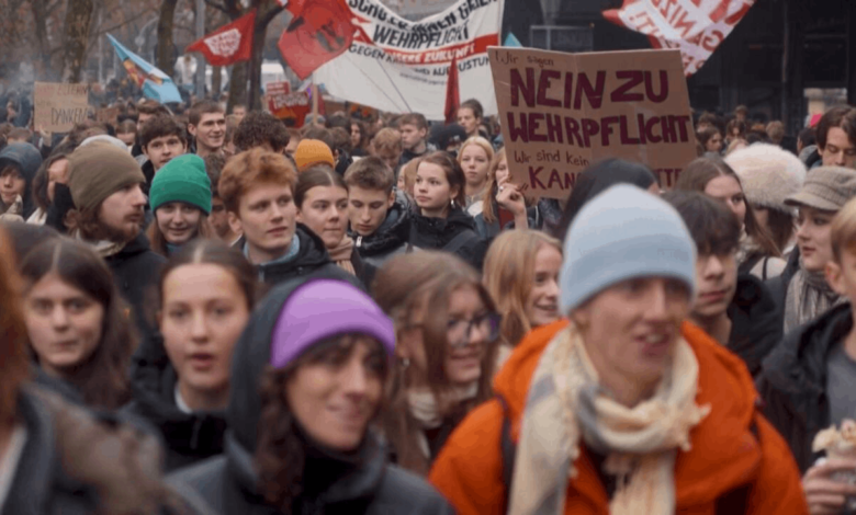 شباب أوروبا يرفض أن يُحمّل أعباء حروب لم يختارها، من أوكرانيا إلى أي صراع قادم، متحدّين حكوماتهم التي تروّج للتجنيد تحت شعار الأمن والدفاع. هذه المواجهة تكشف أزمة ثقة عميقة بين الأجيال الجديدة والسياسات العسكرية، وتعكس مساءلة القارة لمفهوم الحرب ومستقبل السلام – الصورة لـ موقع أليمان إين فرانس