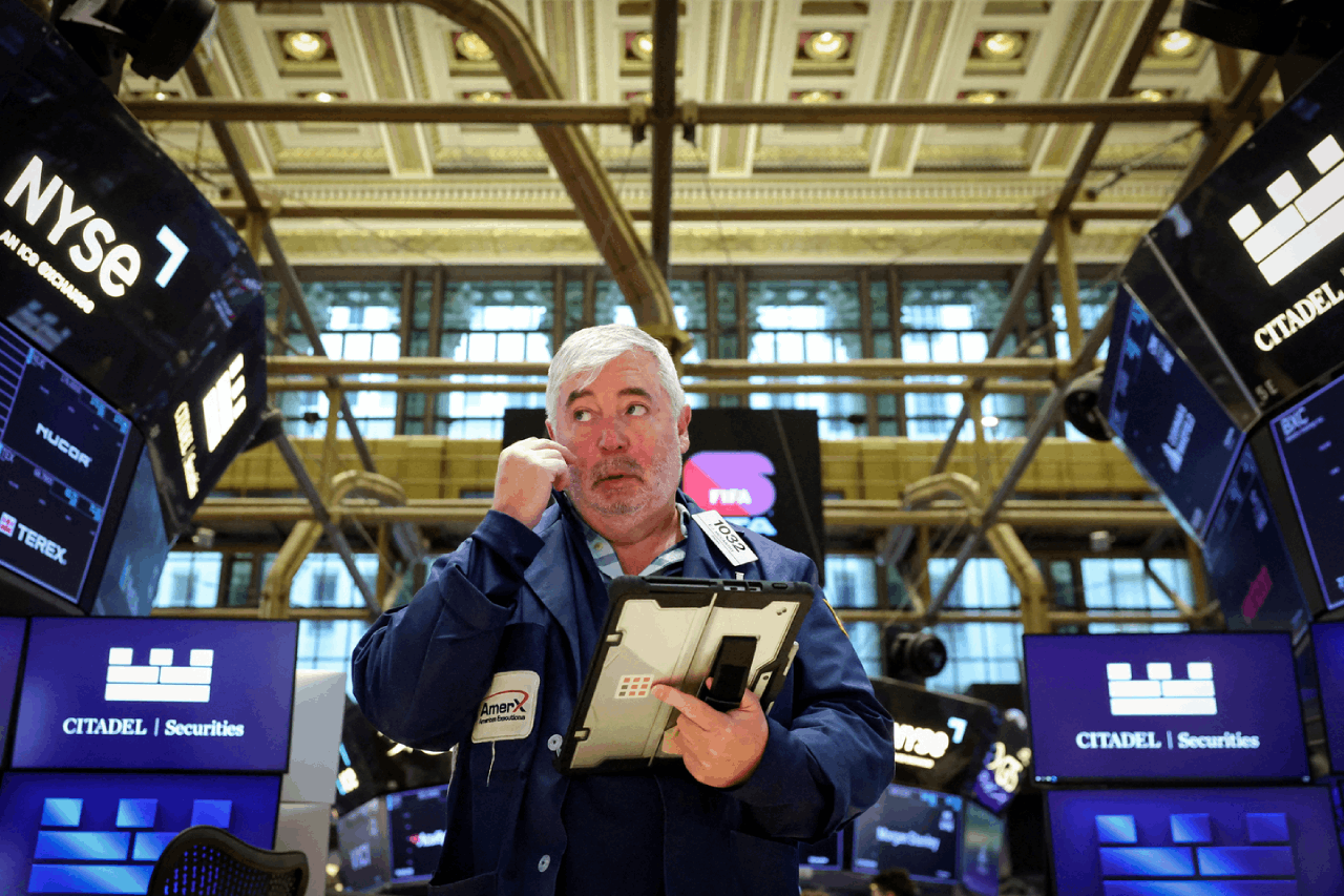 وأنهت مؤشرات بورصة نيويورك تعاملات اليوم الاثنين على تباين محدود بعد تقلبات حادة. فقد أضاف مؤشر الأسهم الكبرى الأمريكي 2.74 نقطة فقط، أي أقل من 0.1%، ليغلق عند 6,881.62 نقطة، بعدما كان قد تراجع في بداية التداولات بنسبة بلغت 1.2%. وتراجع مؤشر داو جونز الصناعي 73.14 نقطة، أو 0.1%، إلى 48,904.78 نقطة، بينما صعد مؤشر ناسداك المجمع 80.65 نقطة، أو 0.4%، إلى 22,748.86 نقطة، مستعيدًا خسائر الصباح الثقيلة.